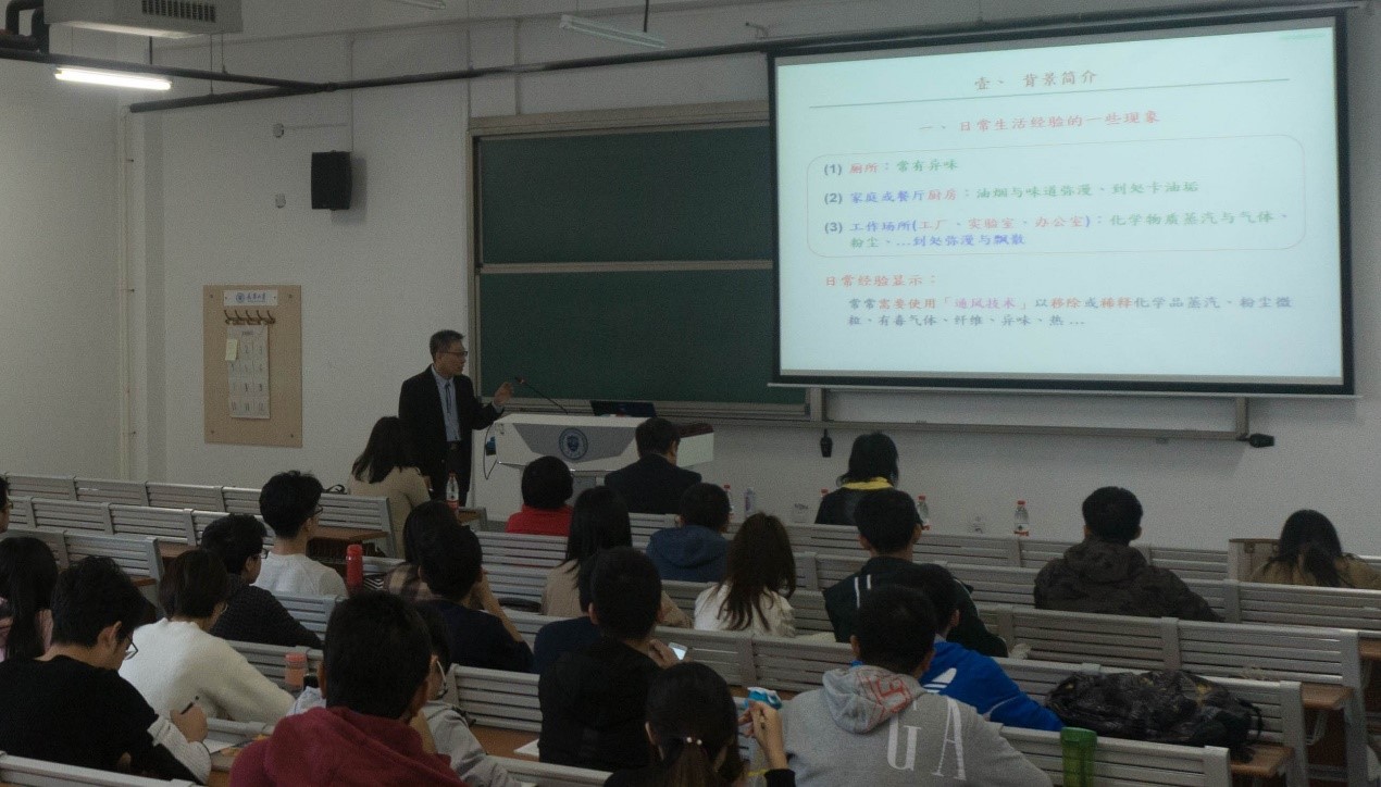 在报告中,黄教授向大家介绍了高效率通风系统的设计,并给出许多通风案例,利用实验影片、动画、照片等方式,生动形象地向老师同学们展示了数种创新型通风方式的试验案例,这些创新的方法新颖有趣,引起师生们的深入思考。在之后的提问环节中,黄教授和学生们针对科研问题与方法展开了激烈和深入的讨论。