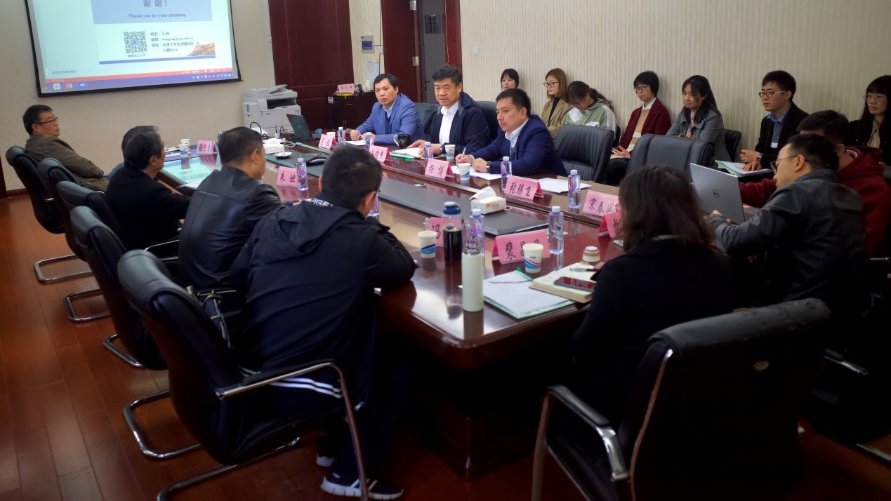 由科研院杨博副院长介绍到会领导、学术委员会委员之后,会议正式开始。首先,张腾飞副院长讲话,提出极端环境作为环境学院发展八个方向之一,需要深入学习习近平总书记“四个面向”,重点面向国家重大需求,关注解决人民群众的健康,抓住机遇发展,向社会贡献自己的力量。
