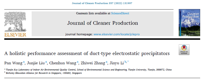 2022年4月,环境科学领域一区期刊《Journal of Cleaner Production》刊登了刘俊杰老师课题组王攀博士的研究成果:管道式静电过滤器的全面性能评价(A holistic performance assessment of duct-type electrostatic precipitators)。