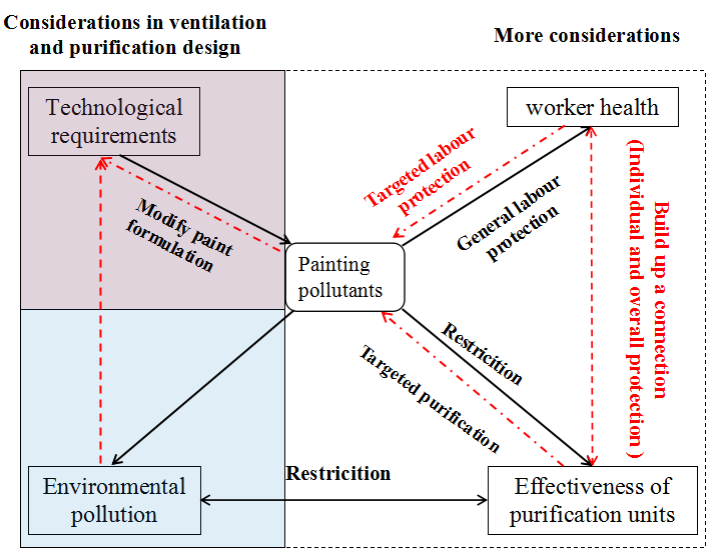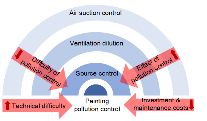 建议喷涂车间污染物捕集净化效果的提升应从单体设备、通风气流组织与运营管理三方面整体考虑。