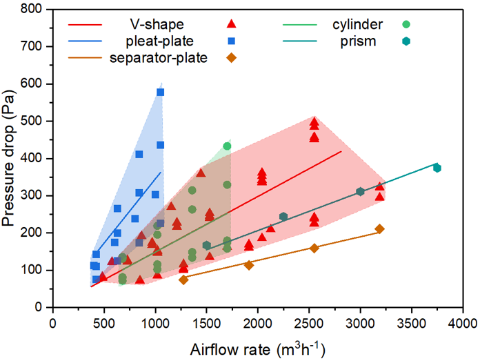 1. 分析了过滤器结构、褶结构和滤料对过滤器阻力的影响