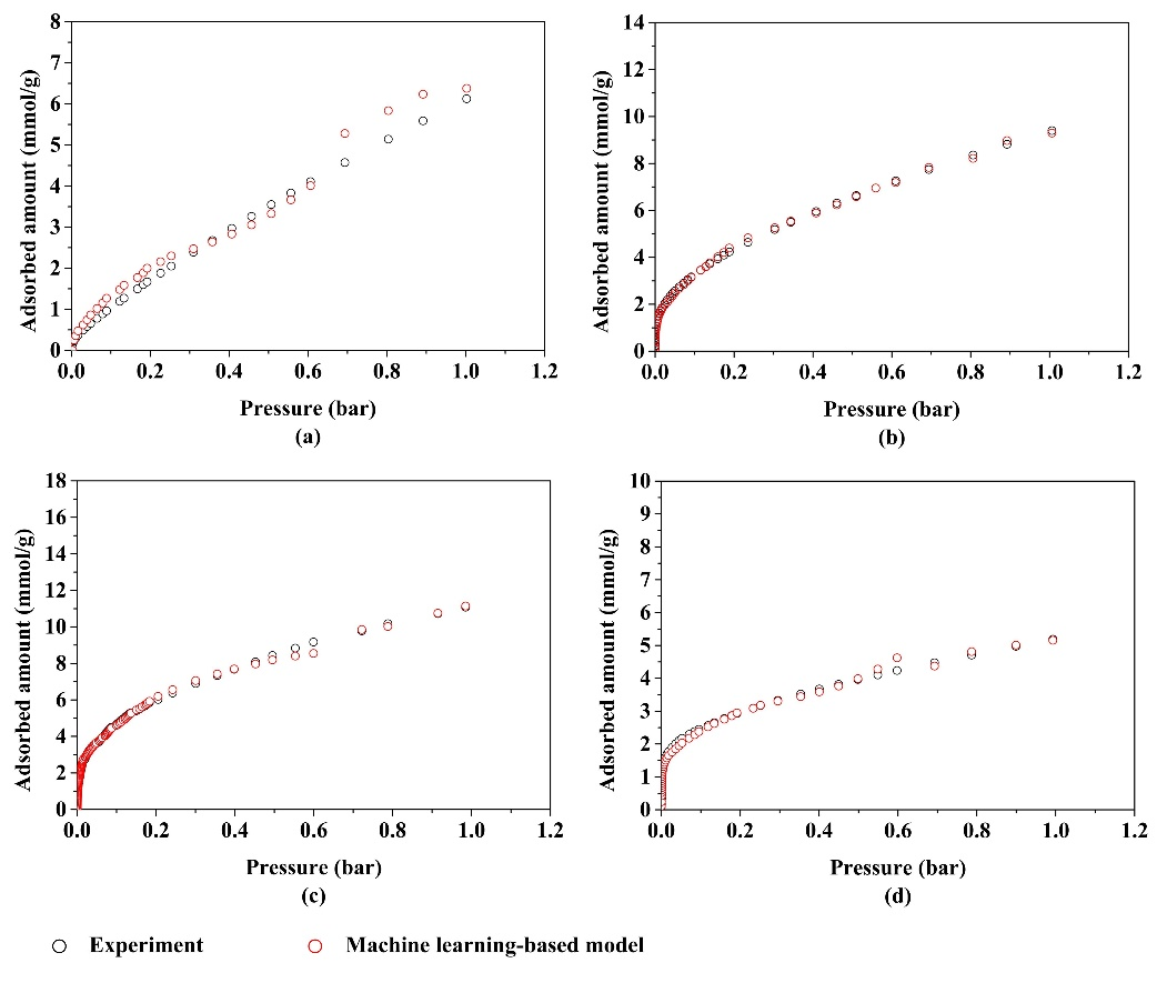 近年来,机器学习已被应用于预测不同吸附剂的吸附行为。机器学习模型的优点是只利用材料的基本的表征参数作为输入就可以预测吸附行为。根据以往的研究推断,机器学习模型在吸附容量预测方面可以提供可靠的精度。这些模型的优点是只需要吸附材料基本的表征参数作为输入,不需要像传统吸附等温线模型那样依赖于大量的假设和原始的吸附等温线数据。然而,以往的研究中建立的模型仅使用一组特征来预测不同压力下的吸附容量。这可能会限制模型的准确性,因为吸附剂特性对不同压力下吸附性能的影响是不同的。