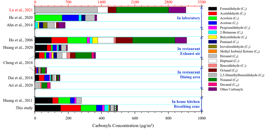 基于实测调研给出120户家庭厨房烹饪过程中醛酮类化合物污染现状