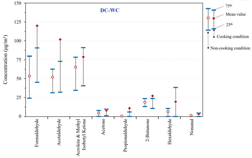 本研究基于120户真实住宅厨房烹饪工况下的实测数据,探究了既有通风方式能否有效控制以醛酮类为代表的气态化合物。