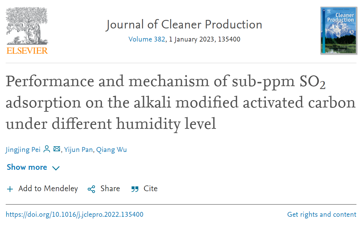 Pei, J., Pan, Y., & Wu, Q. (2023). Performance and mechanism of sub-ppm SO2 adsorption on the alkali modified activated carbon under different humidity level. Journal of Cleaner Production, 382, 135400. https://doi.org/10.1016/j.jclepro.2022.135400