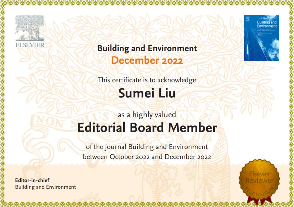 日前,天津大学环境科学与工程学院刘素梅英才副教授获聘国际权威期刊Building and Environment首届青年编委。首届青年编委共计28名,由来自中国、挪威、丹麦、意大利、德国、美国、英国、加拿大、马来西亚、新加坡、韩国等知名青年学者组成。