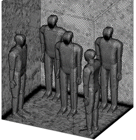 图4. 本研究使用的网格分布:(a)在电梯内,(b)在人的口鼻附近。