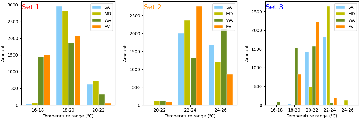 Fig. 8. Distribution of the amount of the ICTS in various temperature ranges.
