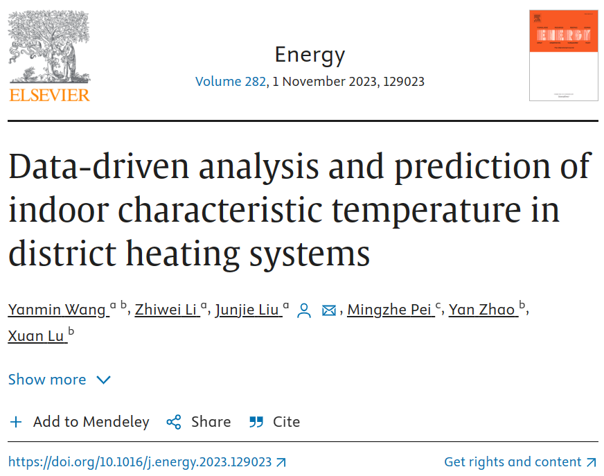 Yanmin Wang(王延敏,一作,天大/大连海心),Zhiwei Li(李志伟,天大),Junjie Liu(刘俊杰,通讯作者,天大),Mingzhe Pei(裴明哲,唐山热力),Yan Zhao(赵岩,大连海心),Xuan Lu(鲁轩,大连海心)