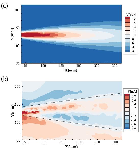 2.高速射流与周围空气交界处有高的湍流强度,意味着与周围空气有强烈相互作用,这种充分发展的高湍流状态对应于高振幅波动。