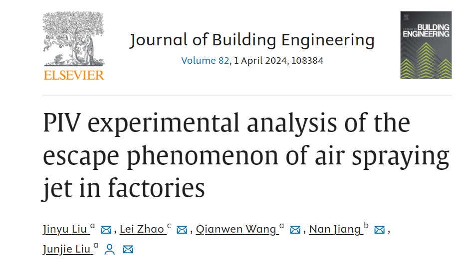 引用格式:Liu J, Zhao L, Wang Q, et al. PIV experimental analysis of the escape phenomenon of air spraying jet in factories[J]. Journal of Building Engineering, 2023: 108384.