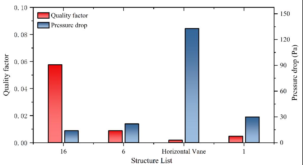 4. (图5)Case6结构百叶窗的品质因子为 0.00880,而Case1结构百叶窗的品质因子为0.00477。Case16百叶窗的品质因子最大,为0.0576。传统商用水平叶片百叶窗的品质因子最小,为0.00181。