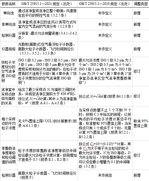 的修订条款,将标准中对于洁净室及相关受控环境设计思路影响比较大的条款进行对比。