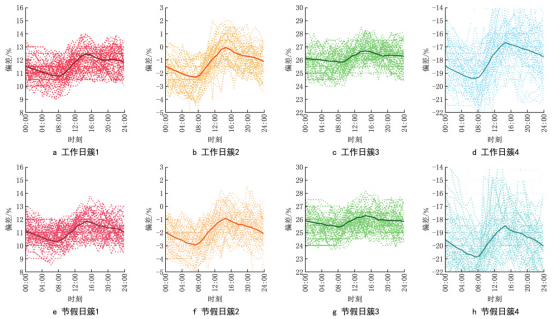 提取室温在一天中每小时的测量值,定义一个24h的观测矢量,并使用测量值和设定值之间的偏差程度来放大每个值的信号强度。然后采用聚类方法将这些数据分为多个簇,分析每个簇的潜在规律。