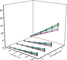 图3展示了管间距比为2.48和4.04的热交换器在风速0.1至0.6 m/s范围内的换热系数。图中显示,随着翅片间距的增大,换热系数显著下降。相比之下,管间距比对换热系数的影响较小,此外,椭圆比对换热系数几乎没有影响,因为它仅改变了管形,并未改变管道的周长。综上所述,翅片间距是影响换热系数的主要因素。